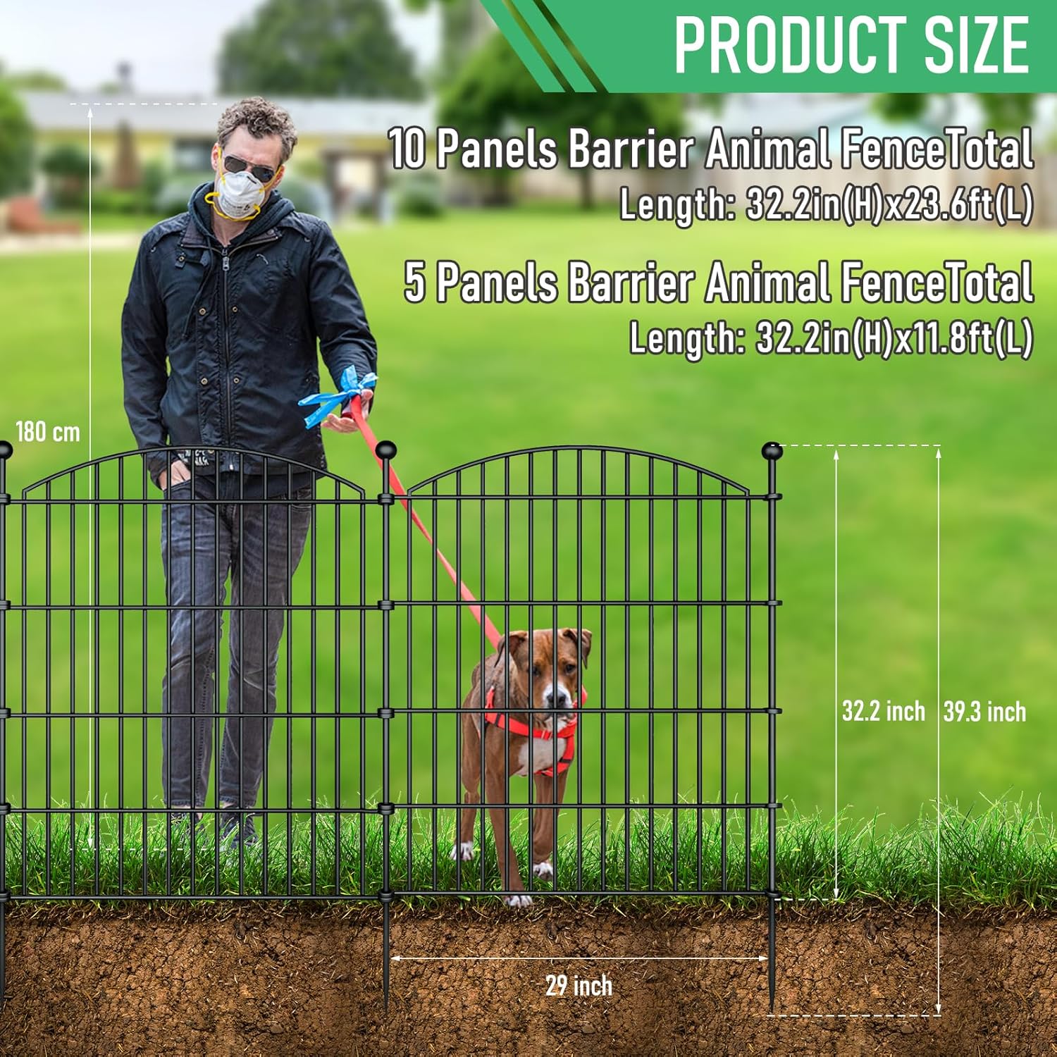 10 Panels Garden Fence Dog Fence Outdoor for Yard, 32in H x 23.6ft L Rustproof Metal Fencing with Ground Stakes | No Dig Animal Proof Containment for Pets/Rabbits | Durable Patio Security Panels